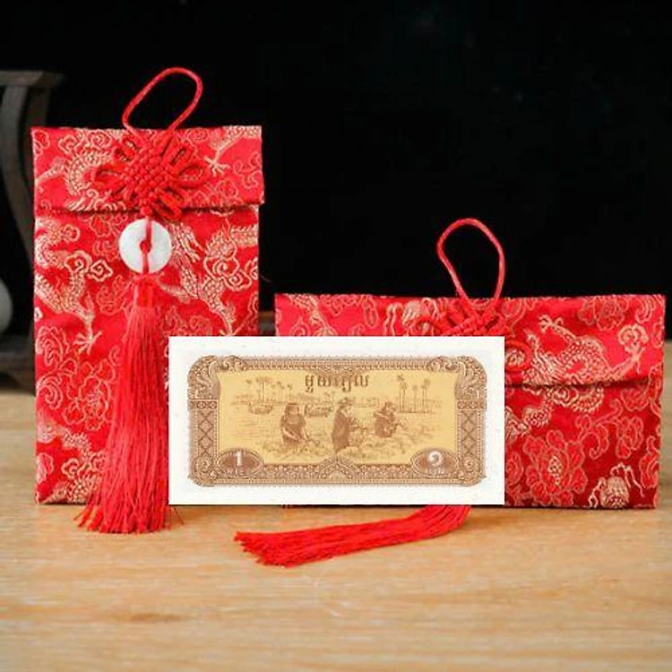Túi gấm hình ảnh nông dân gặt lúa loại 1 Cambodia sưu tầm, làm quà tặng