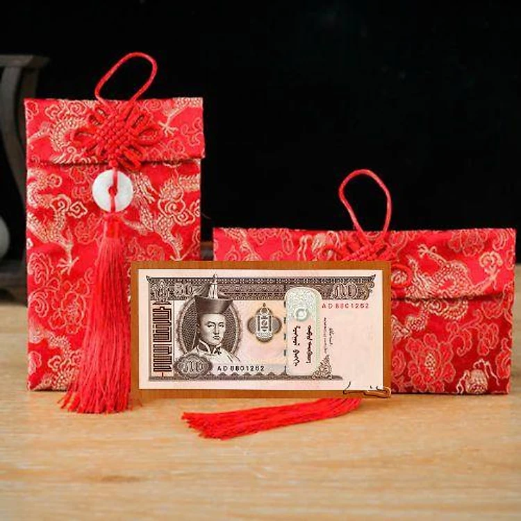 Túi gấm màu cam loại 50 Mông Cổ sưu tầm, làm quà tặng