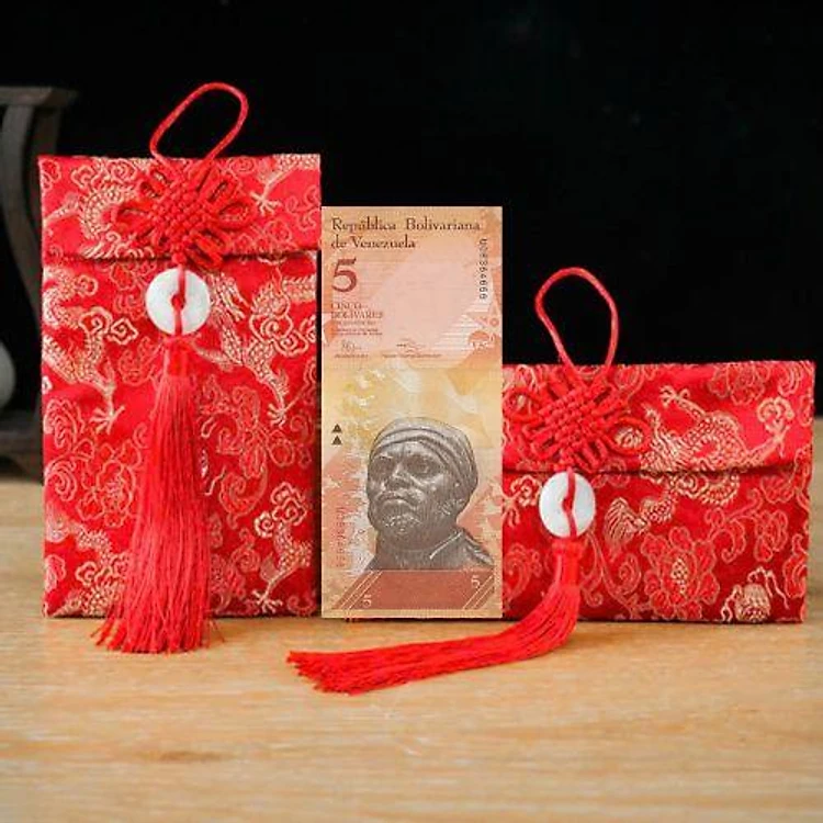 Túi gấm màu cam Venezuela loại 5 sưu tầm, làm quà tặng