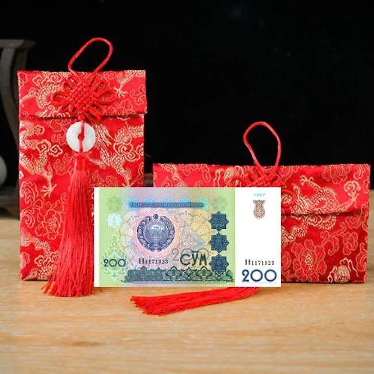 Túi gấm màu xanh loại 200 Uzbekistan sưu tầm, làm quà tặng
