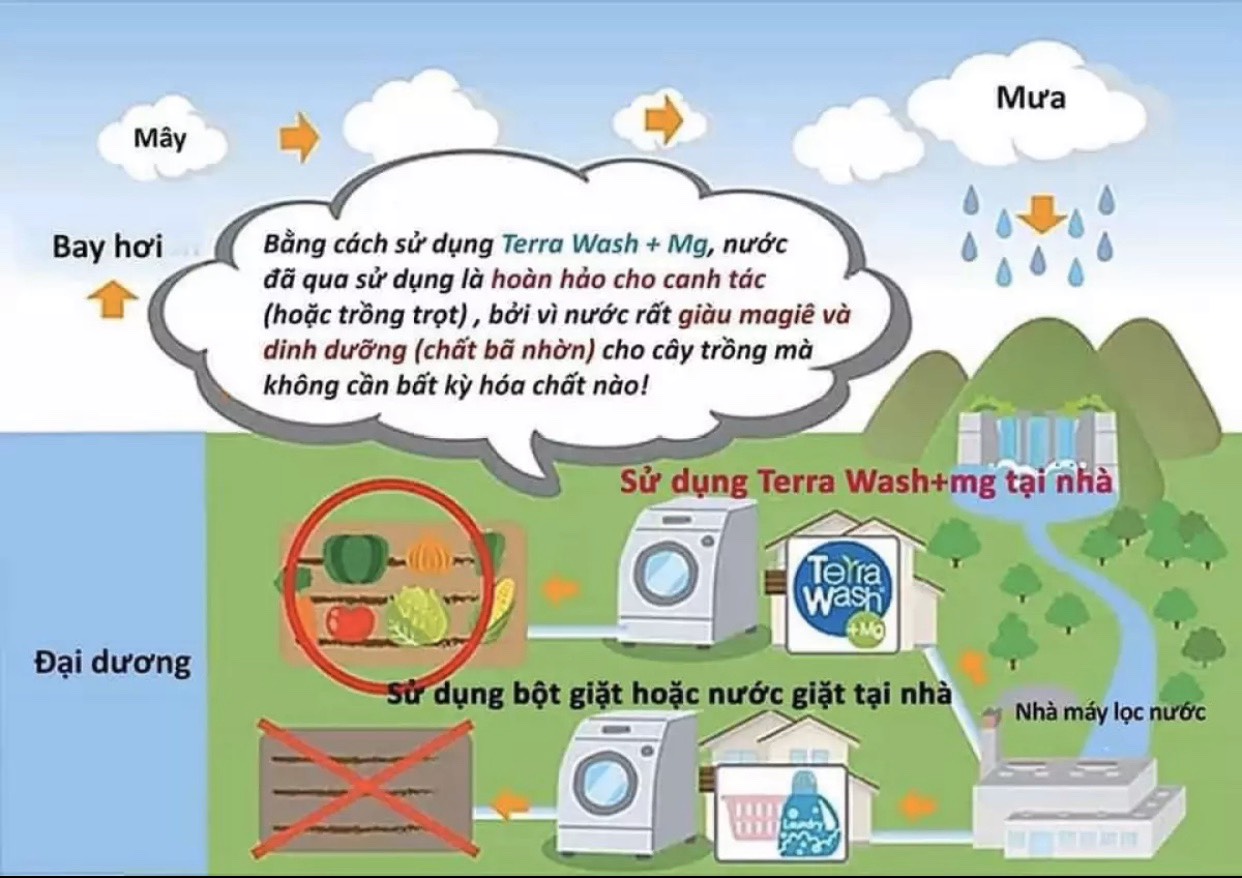 Terra Wash + Mg còn góp phần bảo quản sợi vải và màu sắc, khiến cho quần áo trở nên mềm mại, vì vậy bạn không cần dùng thêm nước xả vải.