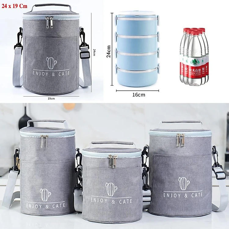 Túi Giữ Nhiệt 3 Lớp Cho Hợp Cơm Văn Phòng Màu Xám Be Siêu Dày Chống Thấm Nươc Cao Cấp Chính Hãng Amalife