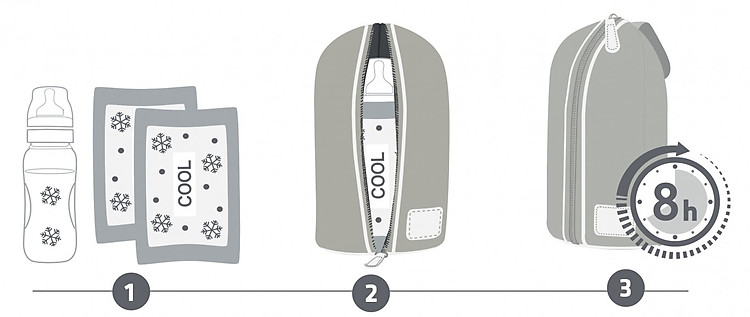 GIỮ LẠNH: sử dụng với sữa đóng đá trong trủ đông, khi mà mẹ và bé chuẩn bị cho 1 chuyến đi xa. Sữa mẹ sẽ được bảo quản trong 8 giờ đồng hồ.'