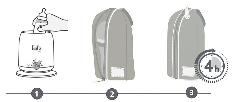 - Đặt 1 hoặc 2 bình sữa /thức ăn ăn nóng (~40-50oC) vào trong túi.