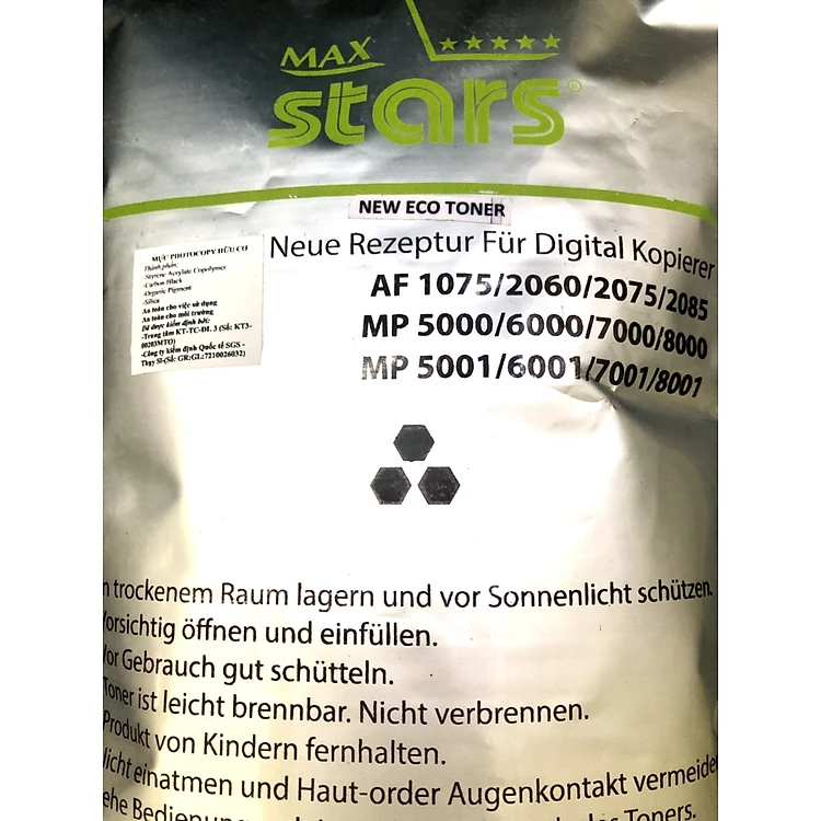 Túi mực Max Stars 1kg: Dùng cho máy photocopy Ricoh MP 4000/ 5000/ 4001/ 5001/ 4002/ 5002/ 5003/ 5500 | 6500 | 7500 | 6000 | 7000 | 8000 | 6001 | 7001 | 8001 | 9001 | 6002 | 7500 | 9002 | 1060 | 1075 | 2051 | 2060 | 2075 | 9100 ( HA - Hàng nhập khẩu )