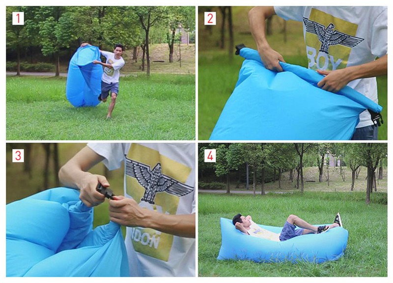 – Khi túi đạt độ phồng như ý muốn, bạn hãy đóng van lại là bạn đã có thể tha hồ nằm, ngồi hoặc làm phao bơi.