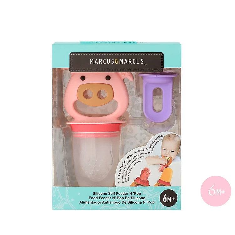 Túi nhai ăn dặm chống hóc silicon kèm gặm nướu và nắp làm kem cho bé Marcus & Marcus, từ 6 tháng - Pokey