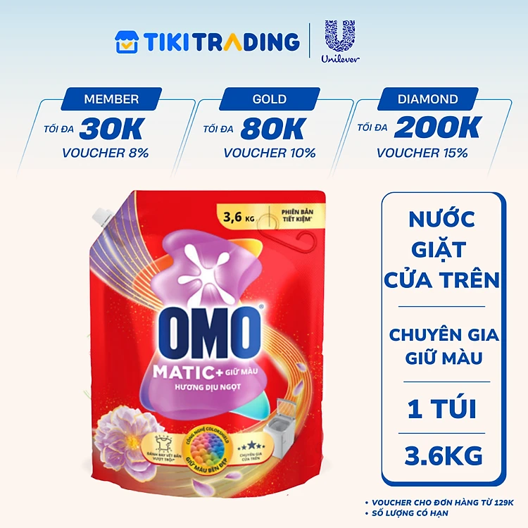 Túi Nước giặt OMO Matic Cửa Trên Hương Diệu Ngọt Chuyên Gia Giữ Màu 3.6KG