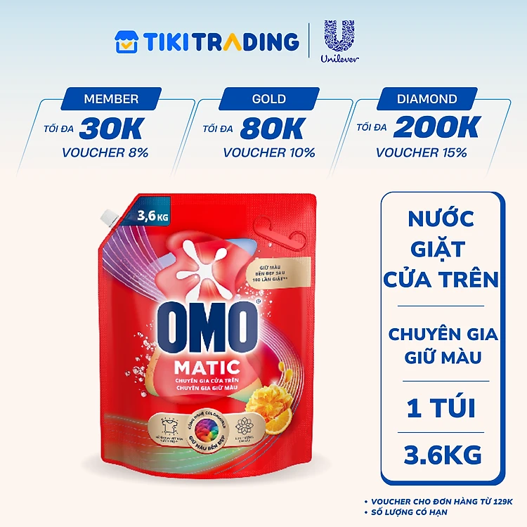 Túi Nước giặt OMO Matic Cửa Trên Hương Cam & Hổ phách Chuyên Gia Giữ Màu 3.6KG