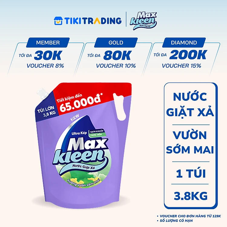 Túi Nước Giặt Xả Maxkleen Hương Vườn Sớm Mai (3.8kg)