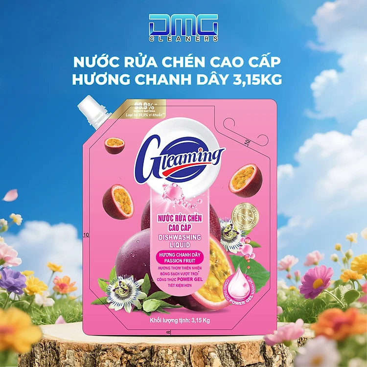 Túi Nước Rửa Chén Bát Cao Cấp Gleaming 3,15Kg Hương Chanh Dây