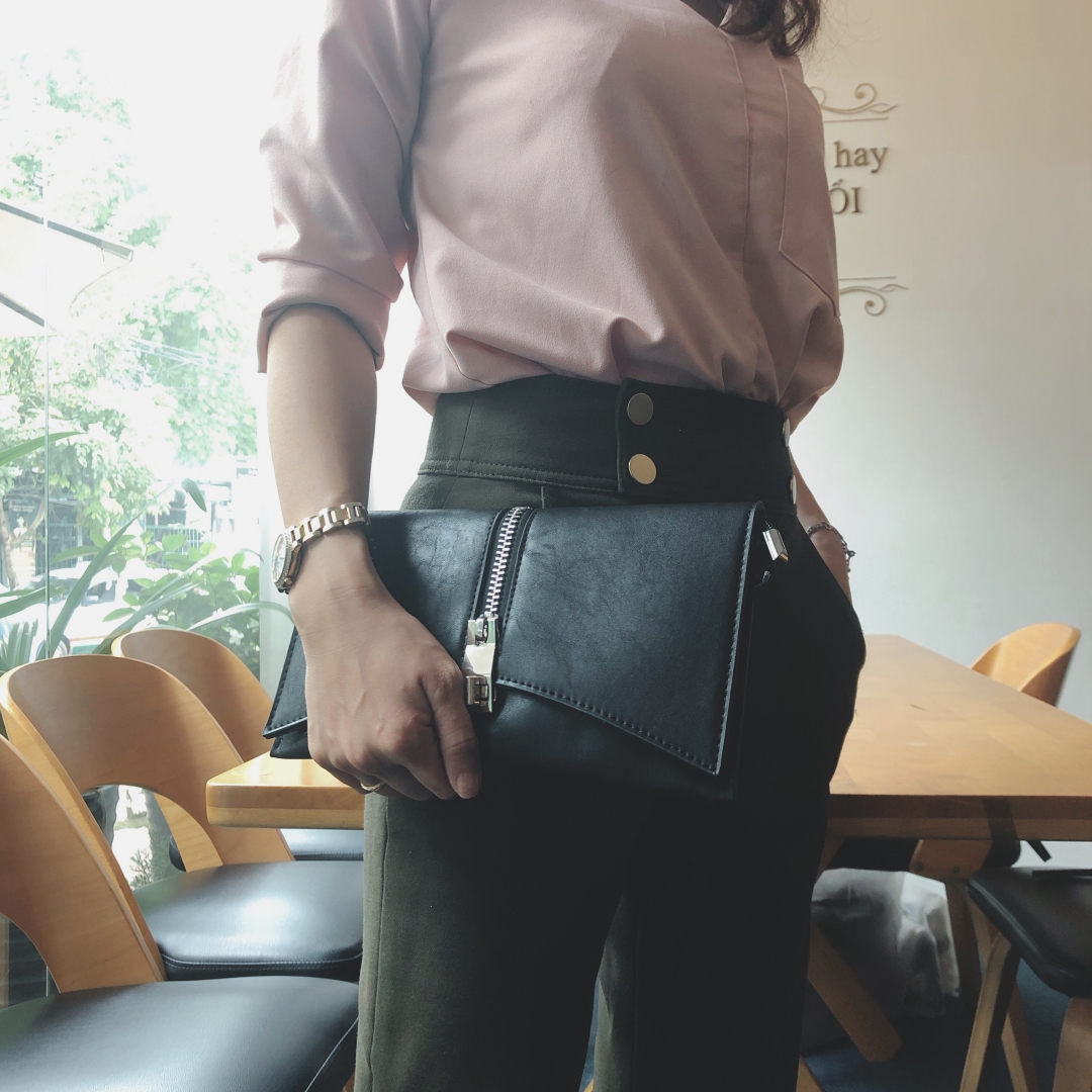 - Dây kéo thiết kế ngang qua mặt túi phá cách đồng thời là khóa cài cho chiêc túi tạo điểm nhấn đầy sang trọng cho chiếc ví cầm tay