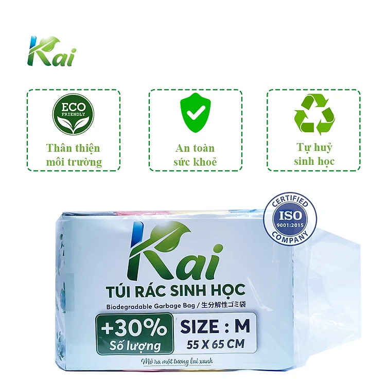 Túi rác tự phân huỷ sinh học KAI, lô 4 cuộn 4 màu, size L: 64x78cm, bền dai, thân thiện môi trường và an toàn cho sức khoẻ, tiết kiệm hơn 30%