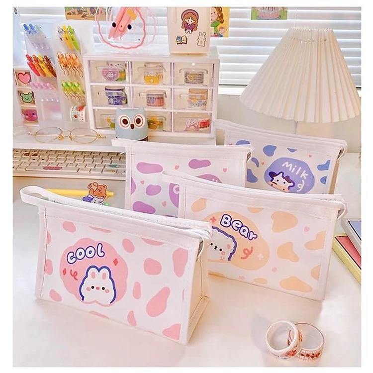 Bóp viết/Hộp bút/Túi makeup trong suốt dạng hình tam giác được rất nhièu bạn yêu thích bởi các hoạ tiết in hình vô cùng dễ thương.