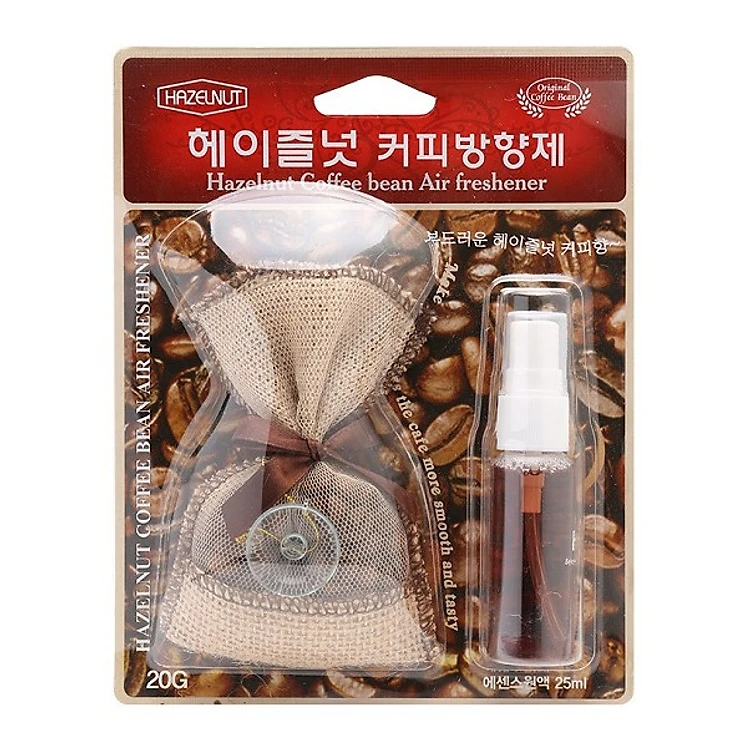 Được chiết xuất từ hạt cafe Hazelnut, sản phẩm nhập khẩu từ Korea cho mùi hương dễ chịu lan tỏa đều trong không gian, giúp bạn luôn cảm thấy thư thái. Túi có chứa các hạt thơm hương cà phê đồng thời mang tác dụng hút ẩm, treo trong ô tô khi đi đường dài giúp chống say, giữ người tỉnh táo, thư giãn đầu óc, đồng thời khử mùi hiệu quả trong những không gian bị ám mùi khó chịu.