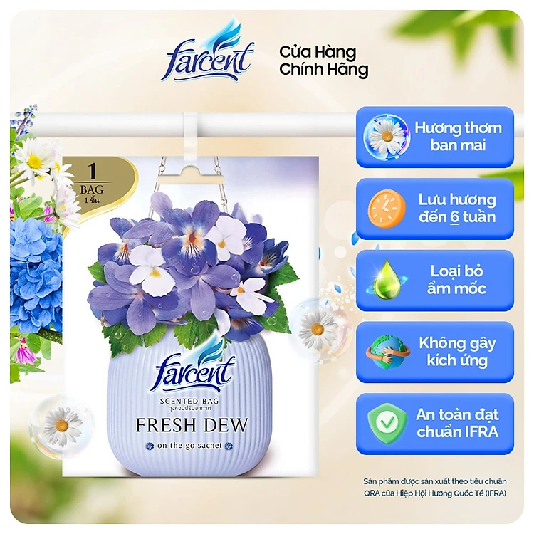 Túi thơm tủ quần áo khử mùi, chống ẩm mốc Farcent (Hương Ban Mai / Hoa Hồng / Hoa Oải Hương) 10g