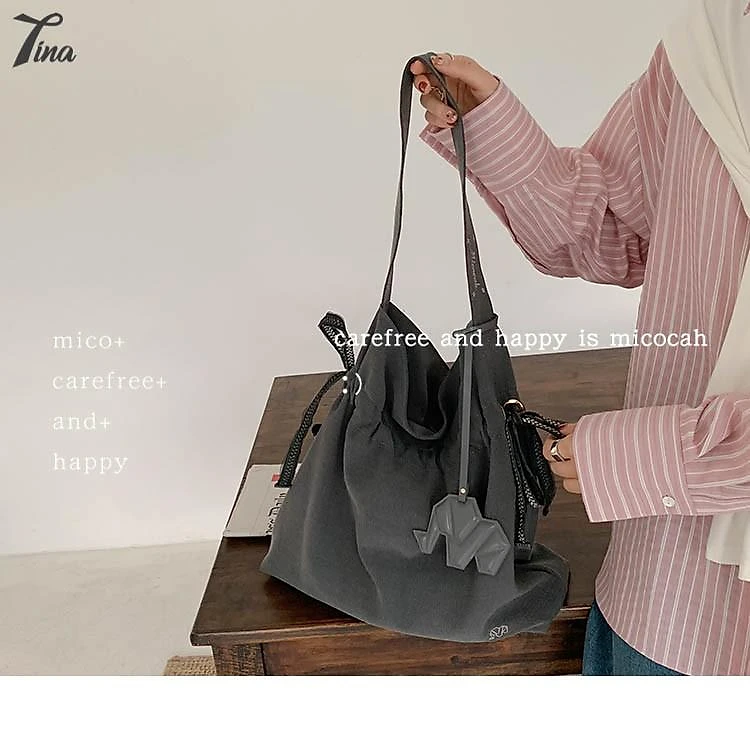 Túi tote đeo vai Micocah 2021 thiết kế dây rút, vải thêu hoa (FSF518) (M428)
