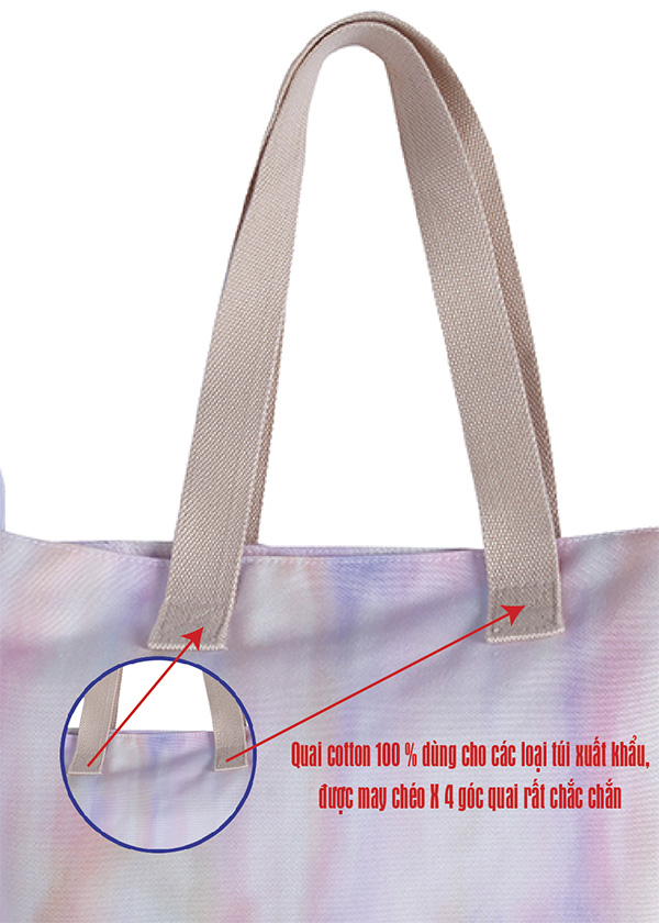 ĐƯỜNG MAY TỈ MỈ, LÓT BÊN TRONG, CÓ NHIỀU TÚI CON, QUAI COTON MAY CHÉO 4 GÓC