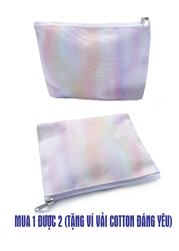 Túi ví vải cotton miễn phí cực kỳ đáng yêu. Sản phẩm quà tặng đi kèm là chiếc túi ví vải cotton rất đáng yêu. Là phụ kiện rất quan trọng và tiện dụng không kém phần thời trang cho các quý cô. Sản phẩm với kích thước chuẩn, chất liệu vải cao cấp, khóa kéo YKK chất lượng, có lớp lót bên trong. Đây sẻ là sản phẩm quan trọng cho quý cô để đựng các phụ kiện nhỏ, thiết yếu.