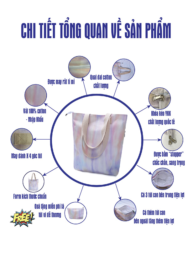 Được làm từ chất liệu Vải cao cấp (Vải canvas nhập khẩu chất lượng), quai xách làm từ dây đai cotton sang trọ Túi ToTe Thời Trang luôn mềm mại và chắc chắn, dễ dàng bảo quản và vệ sinh khi sử dụng. Với các gam màu nhẹ nhàng, cá tính và không đụng hàng, độc lạ.