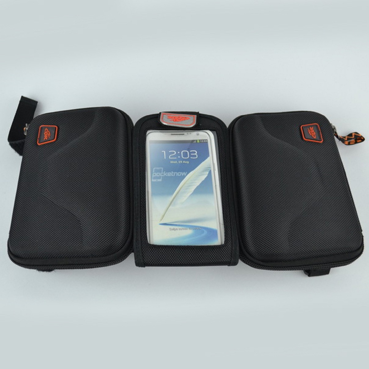 Sản phẩm tích hợp để điện thoại, hỗ trợ cảm ứng phía ngoài túi.