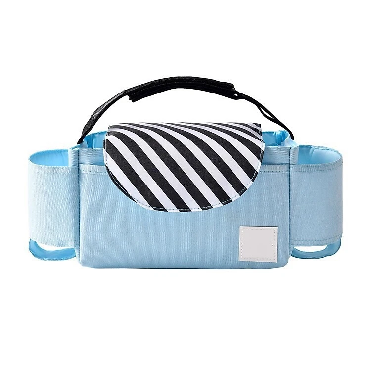 Mặc dù hầu hết các loại xe đẩy đều có ngăn để đồ ở gầm xe nhưng như vậy thì không được sạch sẽ lắm, vì thấp, sát mặt đất bụi bặm rồi là xóc nẩy lên rơi, va vào nhau nên em túi treo trên tay đẩy xe là hợp lý nhất: