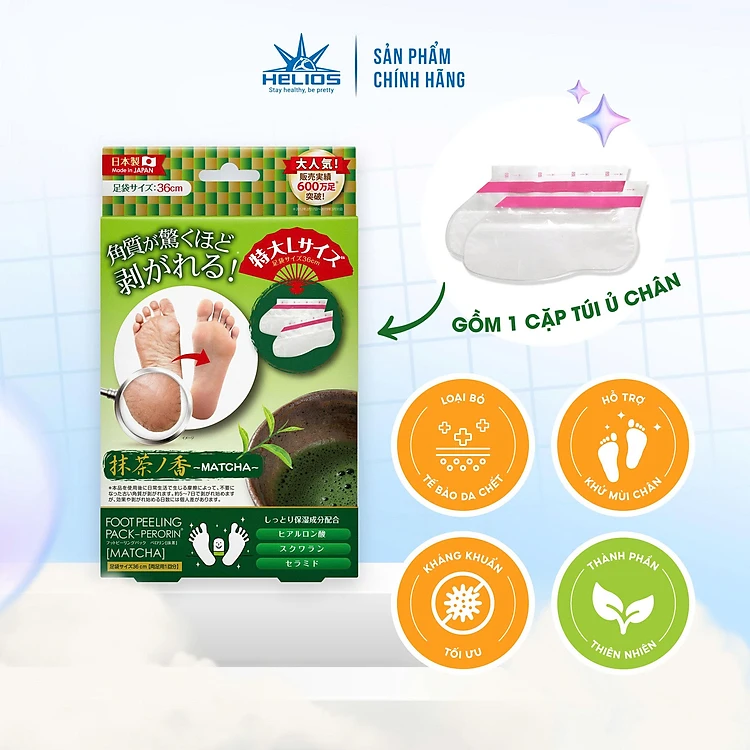 Túi ủ tẩy tế bào chết, dưỡng ẩm chân PERORIN (Matcha) - Nhật Bản - Chính hãng - Hộp 1 túi