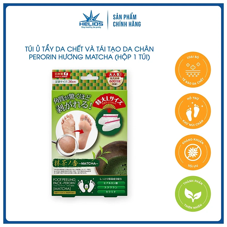 Túi ủ tẩy tế bào chết, dưỡng ẩm chân PERORIN (Matcha) - Nhật Bản - Chính hãng - Hộp 1 túi