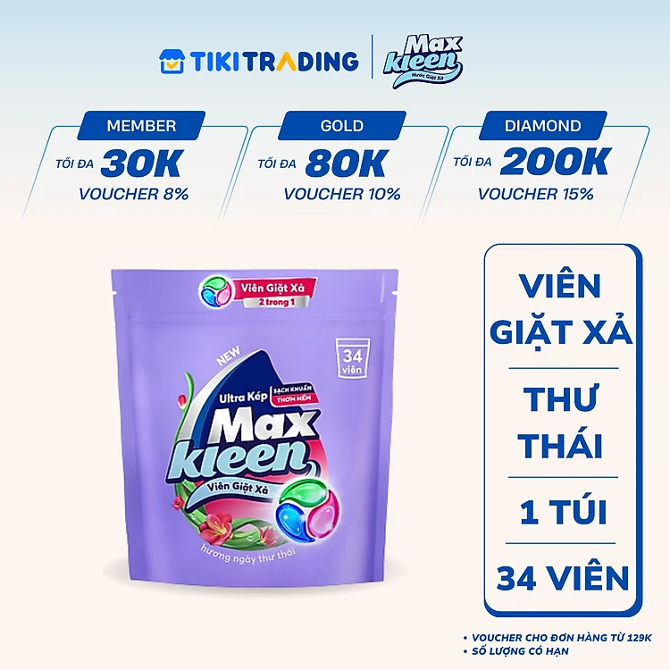 Túi viên giặt xả MaxKleen Hương ngày thư thái (34 viên/ túi)