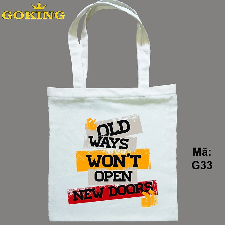 Túi xách OLD WAYS WON'T OPEN NEW DOORS, mã G33. Quà tặng cao cấp cho gia đình, nam nữ cặp đôi, hội nhóm, doanh nghiệp