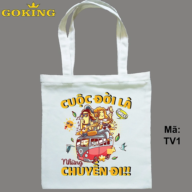 Túi xách CUỘC ĐỜI LÀ NHỮNG CHUYẾN ĐI, mã TV1. Quà tặng cao cấp cho gia đình, nam nữ cặp đôi, hội nhóm, doanh nghiệp