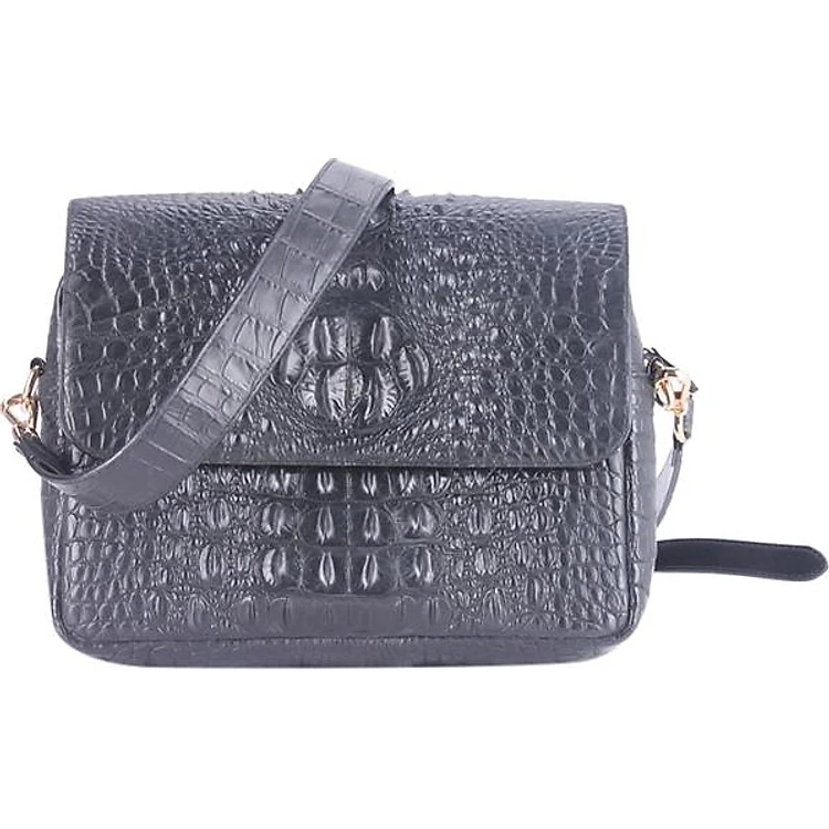 Túi Xách Da Cá Sấu Huy Hoàng Hộp Vuông HT6201 (20 x 37 cm) - Đen
