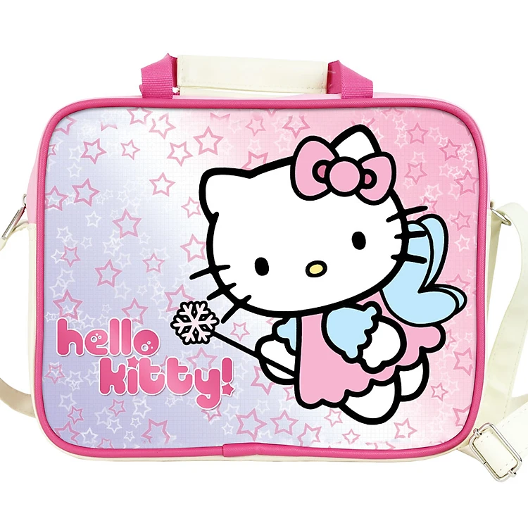 Túi được in hình mèo Kitty đáng yêu với màu sắc sinh động và bắt mắt sẽ làm bé thích thú khi sử dụng. Túi có dây dài để đeo chéo và 2 tay xách thật tiện lợi cho bé khi mang đi học hoặc đi chơi. Với màu hồng chủ đạo, túi mang đến dáng vẻ dễ thương, đáng yêu cho bé gái nhà bạn.