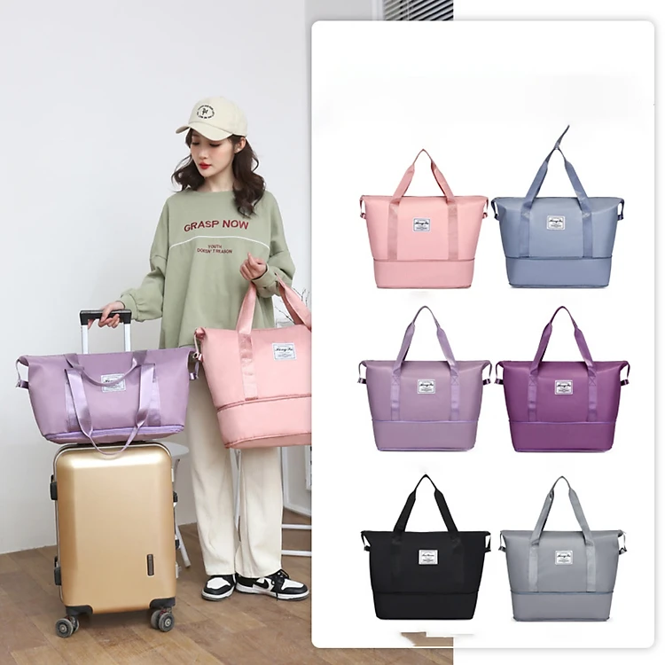 Túi xách du lịch 2 tầng cỡ lớn túi đựng đồ thể thao tập gym, yoga, quần áo nữ chống nước có thể nới đáy thành 2 tầng