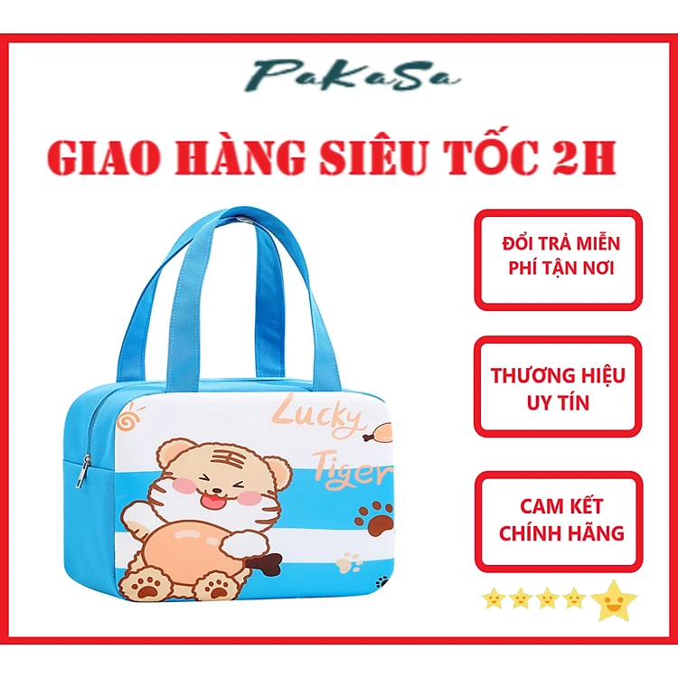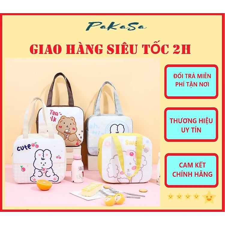 Túi Xách Đựng Hộp Cơm Giữ Nhiệt Đi Làm ,Đi Dã Ngoại, Vải Bọc Lõi Nhôm Chống Thấm Hình Thú Dễ Thương PaKaSa