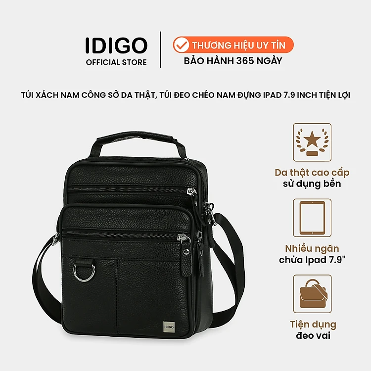 Túi xách công sở nam da thật cao cấp, túi đeo chéo nam đựng IPAD 7.9 inch phối khoen thanh lịch IDIGO MB1 - 6017