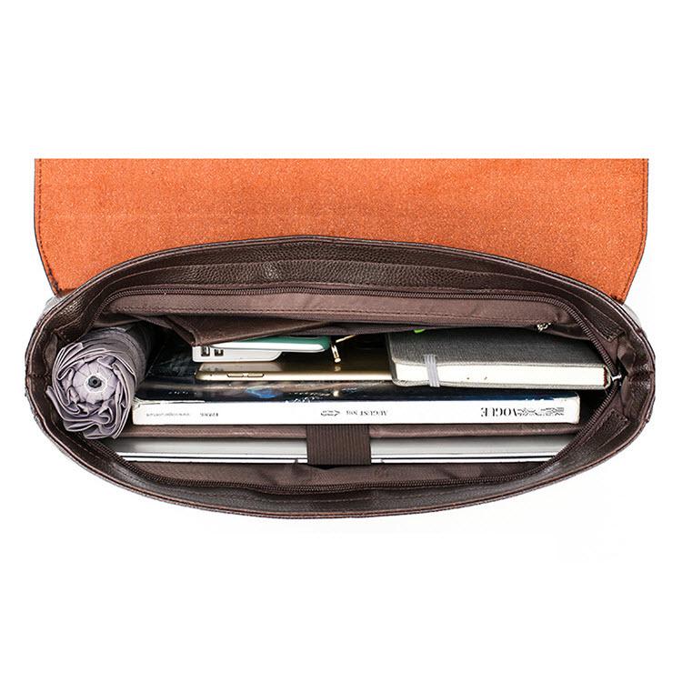 - Các chi tiết túi được làm cẩn thận, bên trong có nhiều ngăn đựng đồ giúp bạn phân chia dễ dàng: tài liệu A4, Ipad, laptop…