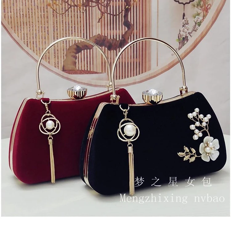Túi xách nhung hoa đá đi tiệc sang trọng cho mẹ- túi xách bà sui đứng sui thanh lịch