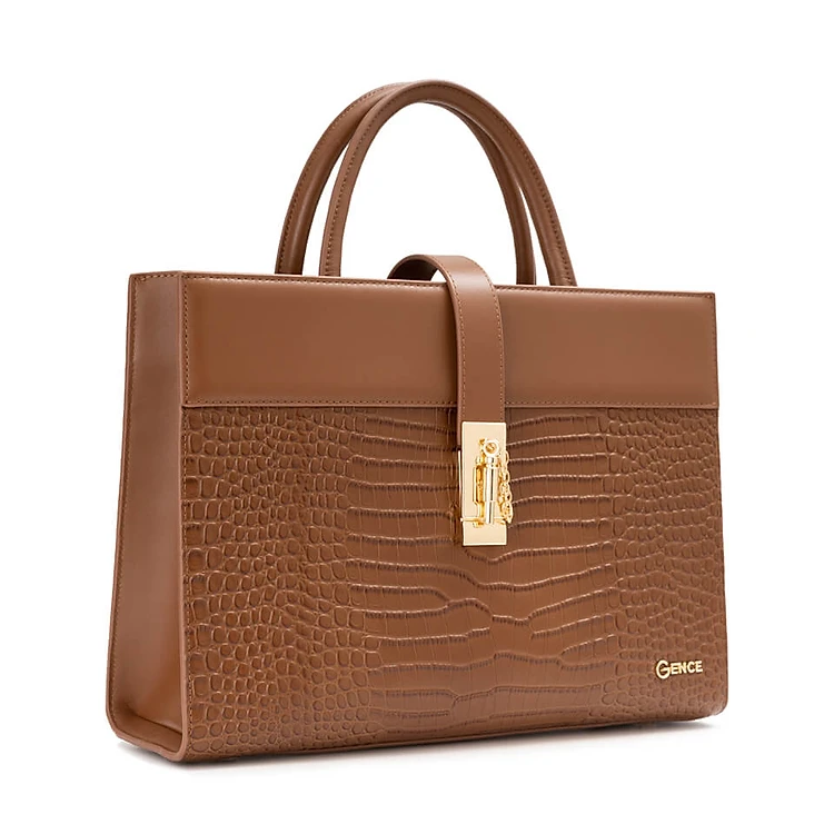 Túi xách nữ công sở Gence da bò dập vân TX19 Nâu Lion