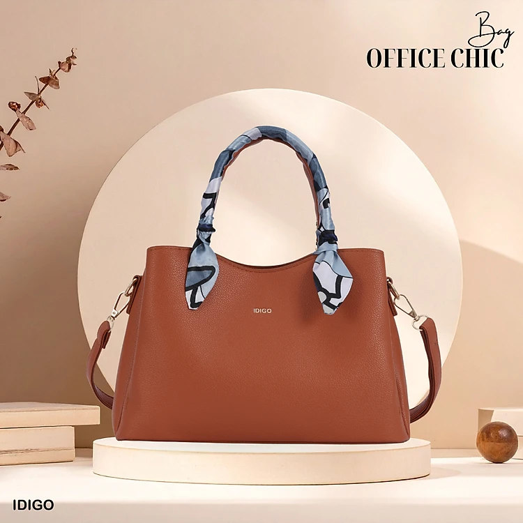Túi Xách Nữ Công Sở Sang Chảnh IDIGO FB2-5055, Túi Đeo Chéo Thời Trang Phối Khăn Lụa Đi Tiệc Cao Cấp