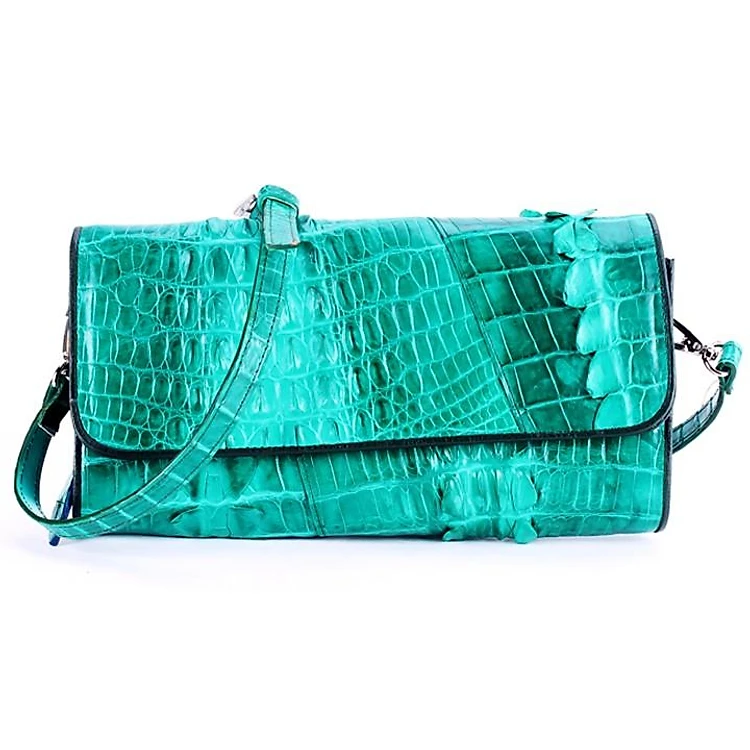 Túi xách nữ da cá sấu Huy Hoàng đeo chéo 2 gai màu xanh lá HC6252