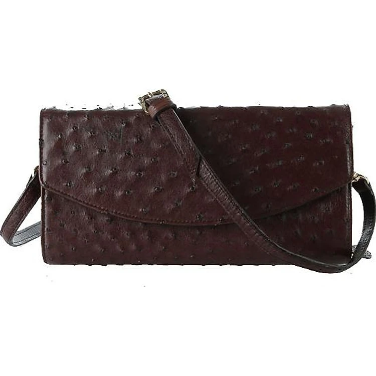 Túi xách nữ da đà điểu Huy Hoàng đeo chéo màu nâu đất HT6433