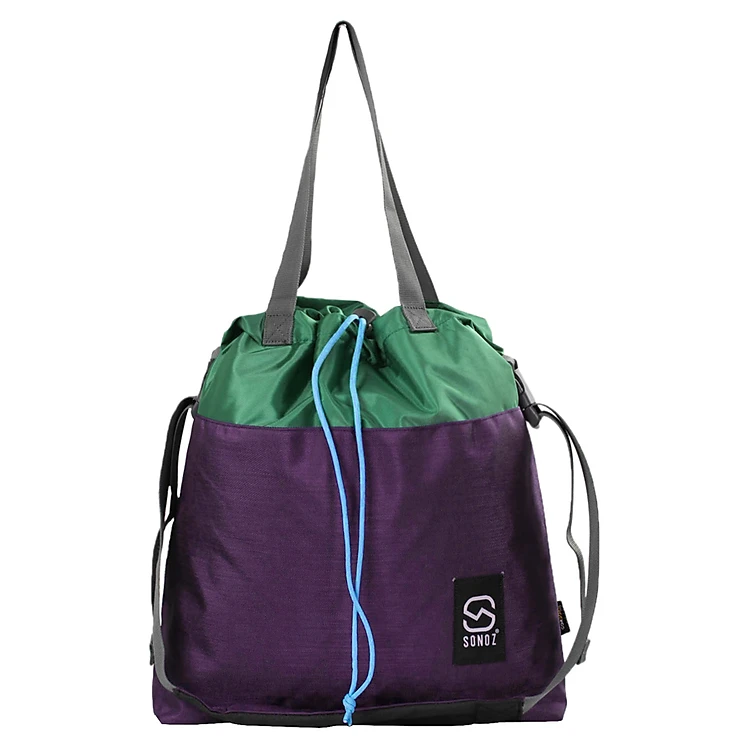 Túi Xách Nữ Sonoz Le Tote được thiết kế trẻ trung, có thể rút dây ở miệng túi để thay đổi hình dáng thật độc đáo. Logo thương hiệu được gắn nổi bật. Túi có màu tím phối xanh lá độc đáo mang đến dáng vẻ ấn tượng hơn cho phong cách bạn gái.
