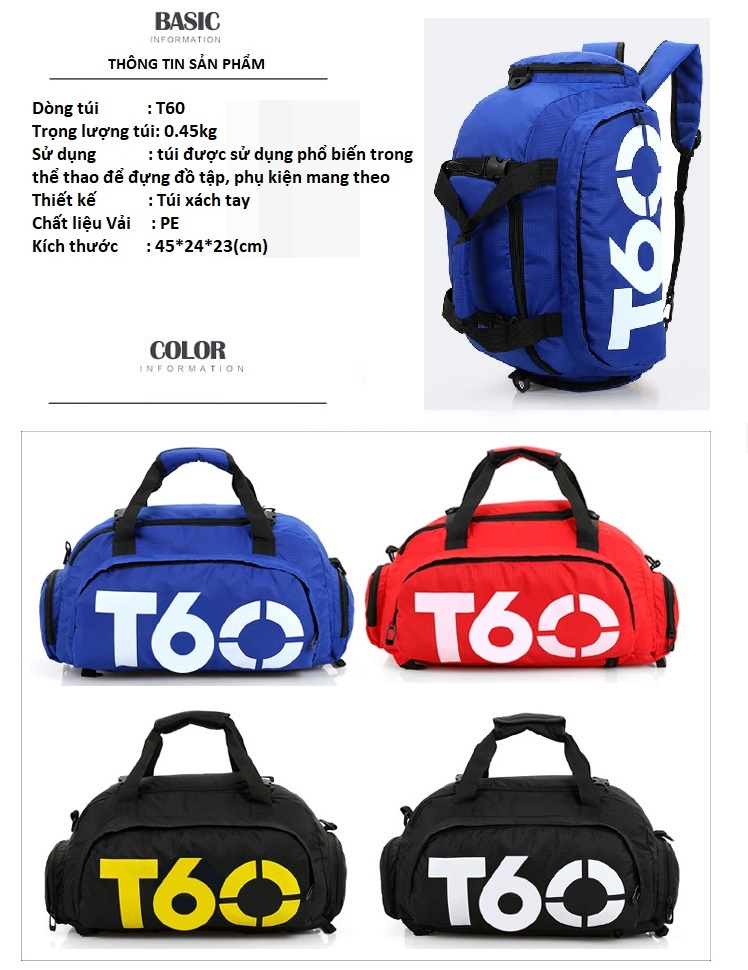 Túi xách du lịch phong cách túi thời trang thể thao T60 kiểu dáng trẻ trung, năng động có lẽ đây là phụ kiện không thể thiếu của các bạn trẻ thích thể hiện cá tính riêng của bản thân trong xu hướng thời trang ngày nay. Túi du lịch thời trang sinh ra là sự lựa chọn hoàn hảo, dành cho các bạn trẻ tự tin, năng động thích phiêu lưu, khám phá những điều mới mẻ. Thông tin sản phẩm: Tên sản phẩm:Túi xách du lịch thời trang T60 Kích thước: 45 x 24 x 23 cm Chất liệu: Vải PE hạn chế chống thấm nước Trọng lượng: 0.45 kg