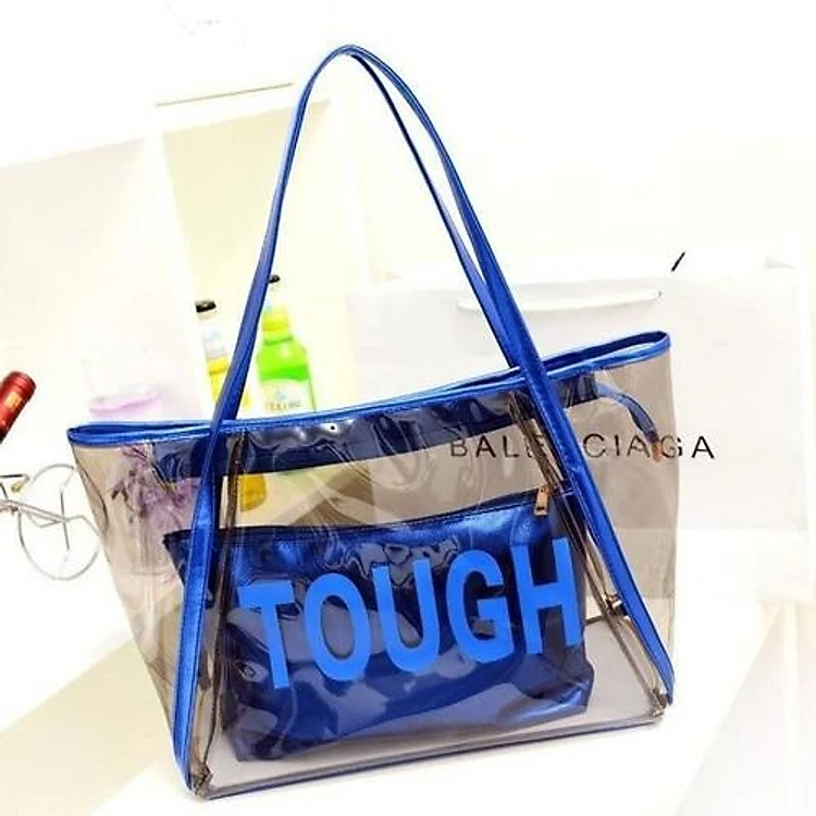 Túi Xách Nữ Đeo Vai, Nhựa PVC Trong Suốt, Kèm Túi Nhỏ Bên Trong bên ngoài được làm bằng chất liệu nhựa trong suốt, hoạ tiết chữ TOUHG, quai đeo chắc chắn, dài cho bạn dễ dàng xách hay đeo vai.