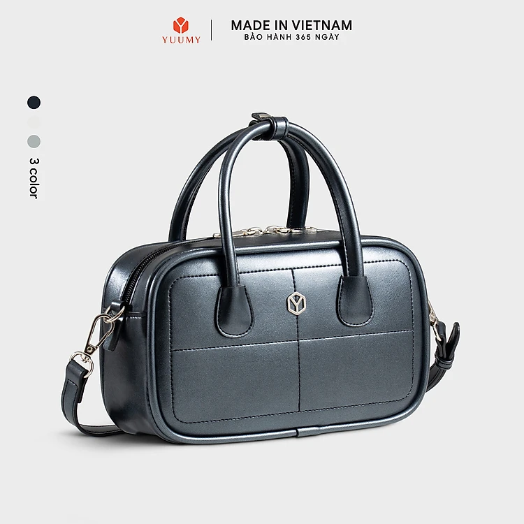 Túi Yuumy ( Thời trang nữ bo góc phối chỉ nổi size 23 - Túi đeo chéo da Glossy YN303 )