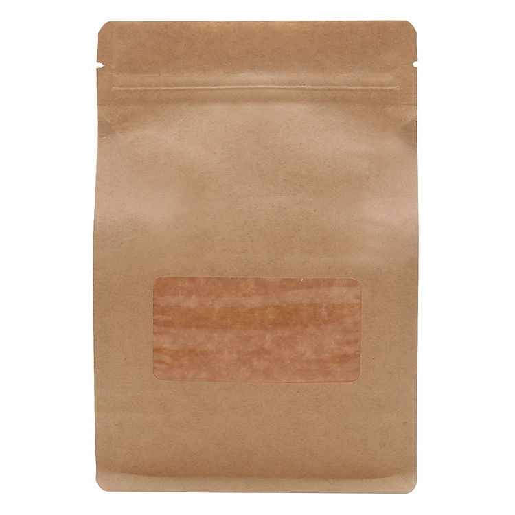Túi Zip Giấy Kraft Nâu Đáy Bằng Có Cửa Sổ
