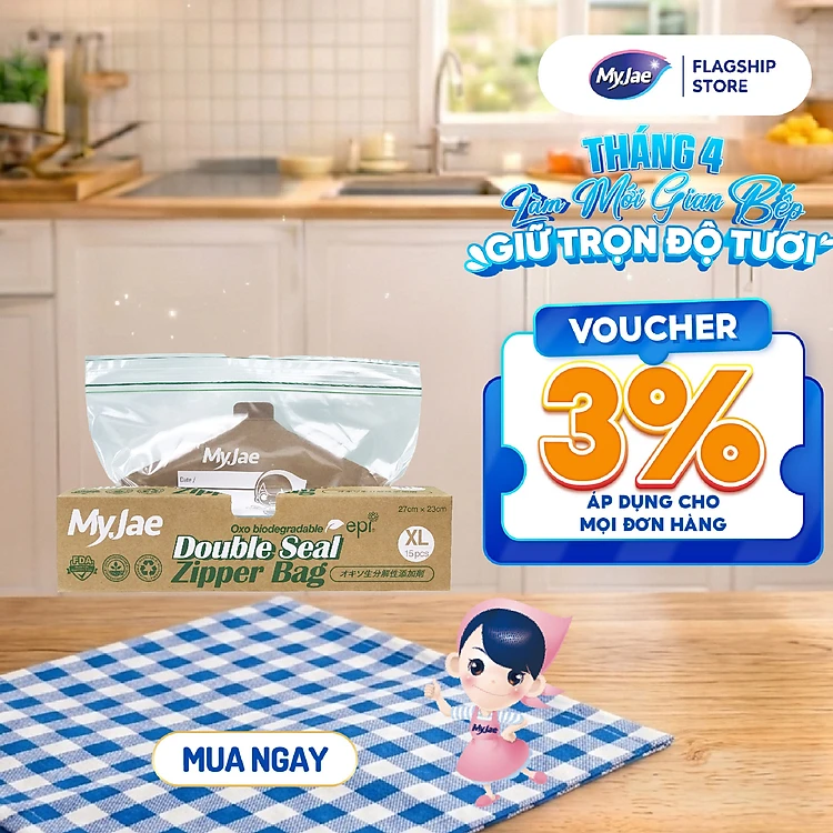 Túi zip Myjae hai đường kéo tự huỷ sinh học (XL)