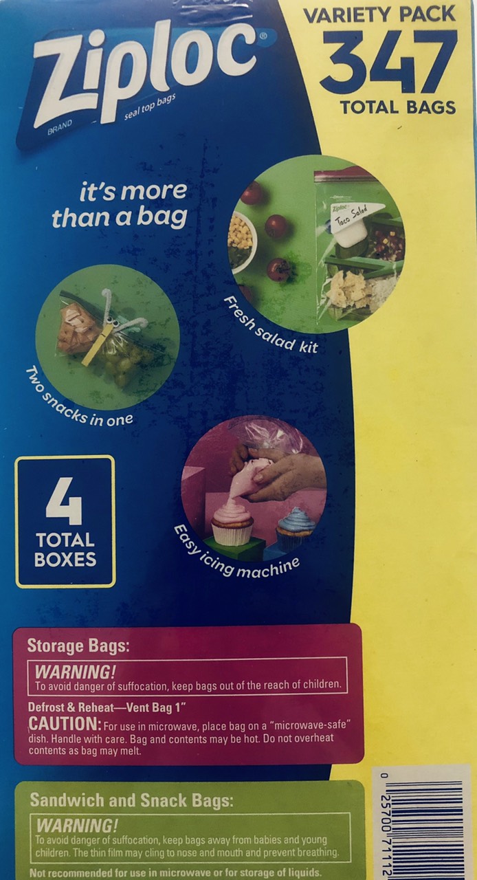 Túi ZIPLOC VARIETY PACK 347 TOTAL BAGS có đủ kích cỡ khác nhau để sử dụng đựng thực phẩm tươi, Snack, Hoá - Mỹ phẩm và đồ ăn nhẹ rất tiện lợi