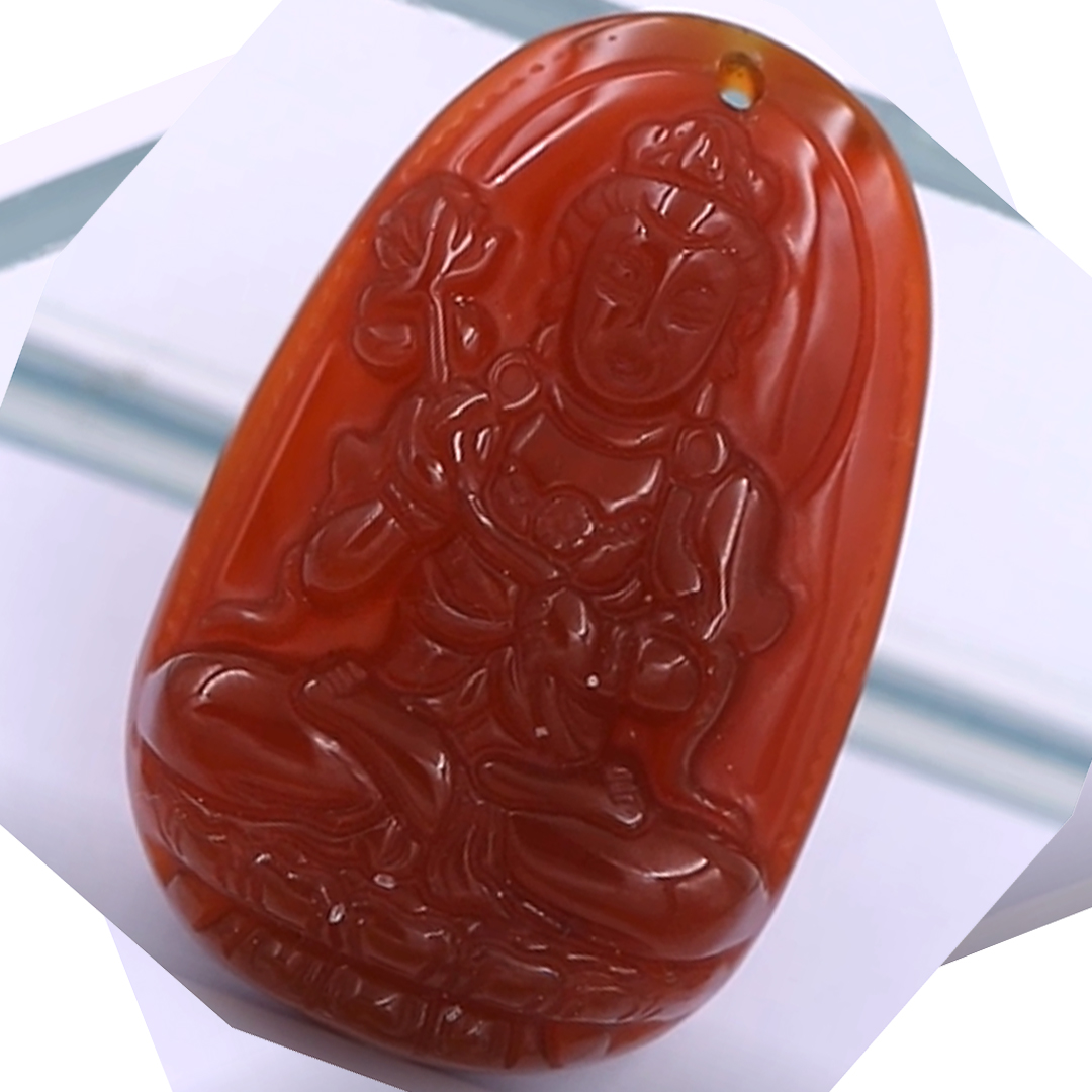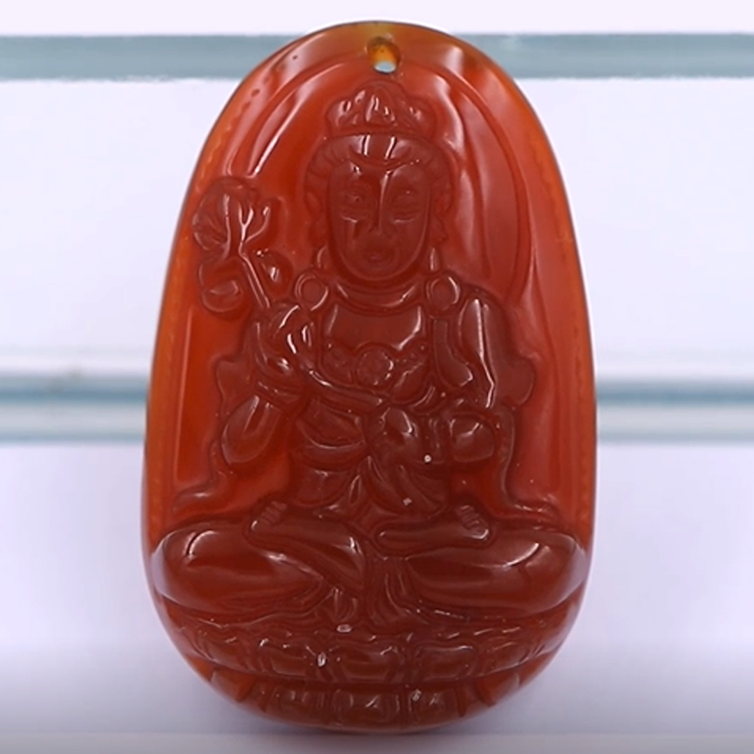 [Tuổi Ngọ] Mặt Dây Chuyền Phật Đại Thế Chí Bồ Tát Đá Mã Não Đỏ Size Nhỏ 3.6cm & Size Lớn 4.5cm - Tặng Kèm Móc Inox - Phong Thủy 868 - May Mắn - Bình An